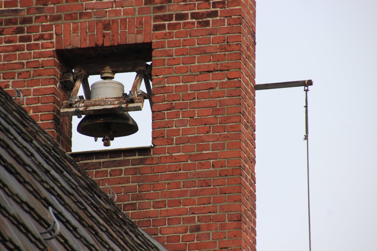 Auch für das nun verwaiste "alte Glöckchen" wurde ein neuer Platz gefunden. Sie hing von nun an sichtbar im rechten Glockenfenster der Kirche. Da es auf der anderen Seite dieses Giebels auch ein paralell angebrachtes Fenster gab, kann man wohl davon ausgehen, dass auch hier ein Glockeneinbau geplant gewesen war, für die aber das Geld wohl nicht mehr gereicht hatte.