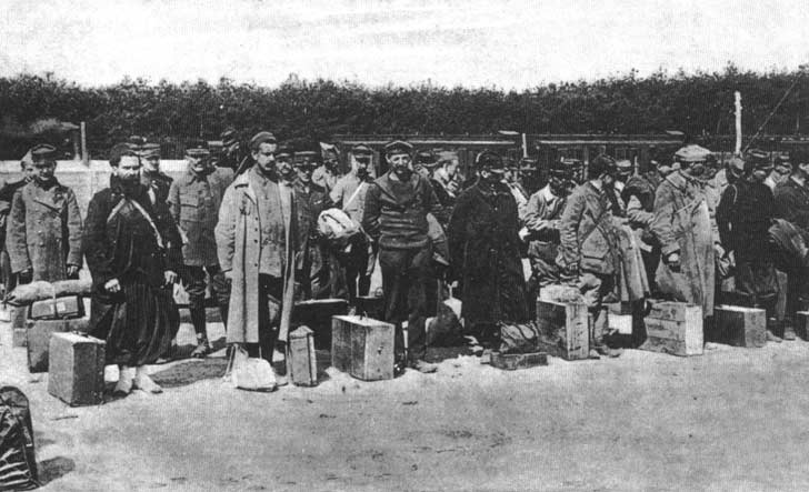 Die Gefangenen waren anfangs in großen Zelten untergebracht, in denen auch einmal Gottesdienst mit Gelegenheit zum Sakramentenempfang abgehalten wurde.