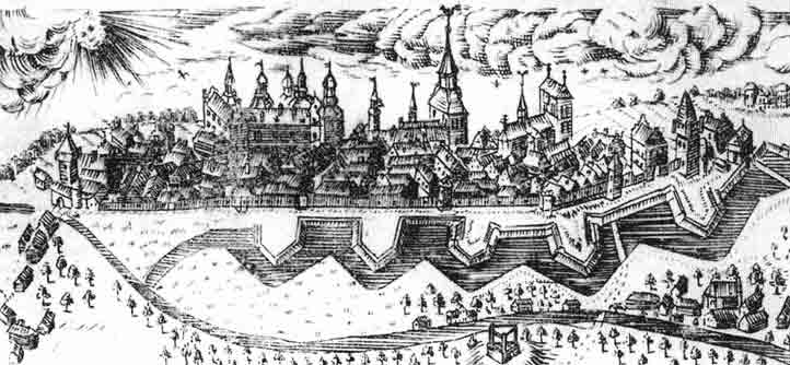 Daneben entstanden die Spitäler mit ihren Kapellen "zum hl.Geist" (erstmalig 1308 erwähnt), St.Georg (St. Jürgen) vor dem Mühlentor (erste Nennung 1313) und St. Gertruden (1429). Auf dem heutigen Klosterhof wurde nach der Zerstörung der dort stehenden Synagoge im Jahre 1330 bereits zwei Jahre später die "Hl.Bluts- oder Fronleichnams-Kapelle" errichtet. In ihr wurde die angeblich von den Juden zerstochene "blutende Hostie" verehrt, bis diese Kapelle, wie auch die Pfarrkirche, im Jahre 1503 dem ersten der drei großen Stadtbrände zum Opfer fiel. An diesem Platz entstand im Jahre 1510 ein Franziskaner-Kloster, das diesem Ort bis heute seinen Namen gab.