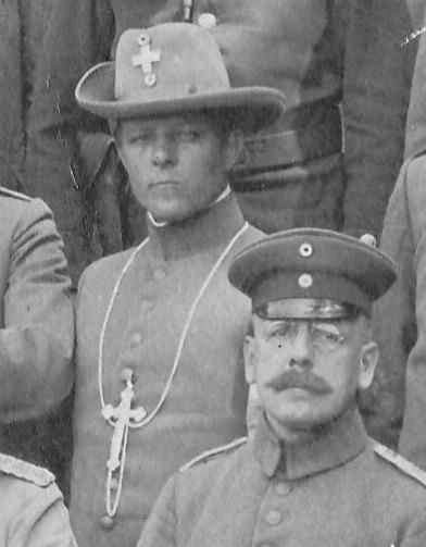 Der erste Militär-Pfarrer H. Baier (Bayer) - auf dem Bild zusammen mit Hauptmann Lauenstein, Adjudant der Lagerkommandanten - wurde jedoch nach einigen Monaten wieder versetzt und durch Pater Johannes Fischer abgelöst.