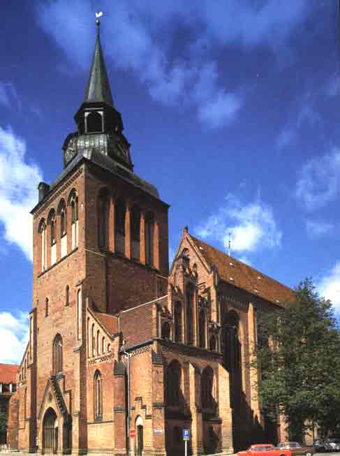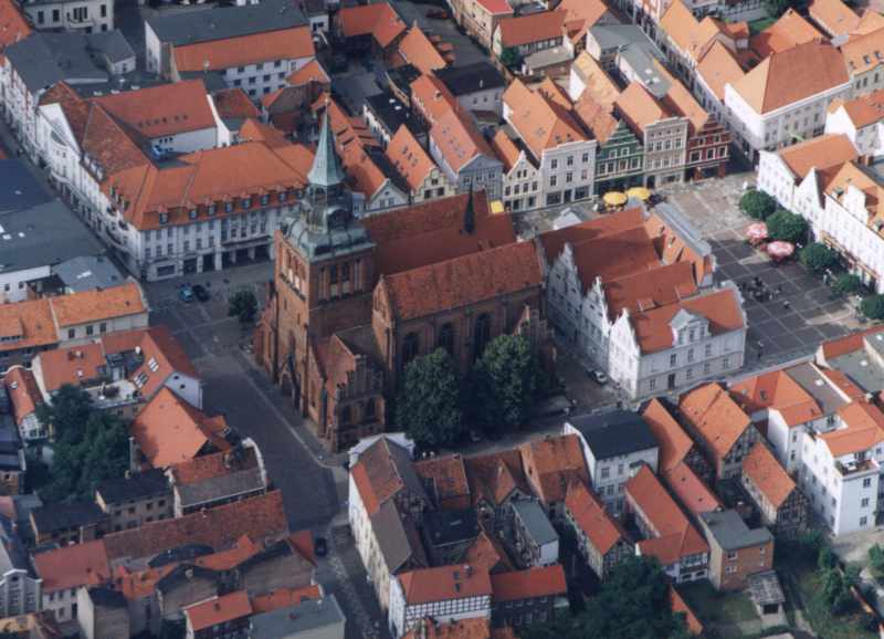 Aus diesen Anfängen heraus entwickelte sich in der Stadt bald ein reiches kirchliches Leben, aber stets beherrscht von den "Domherren", auf deren Zustimmung sogar die Fürsten in kirchlicher Hinsicht Rücksicht nehmen mussten. Nachdem bereits in dem Ortsteil "Alt Güstrow" nördlich der Nebel eine Kirche entstanden war (sie gehörte auch weiterhin zum Bistum Schwerin und wurde 1243 erstmalig genannt), entstand auf dem Marktplatz die Stadtkirche "St.Marien", die Pfarrkirche der Bürgerschaft (erste Erwähnung 1308).