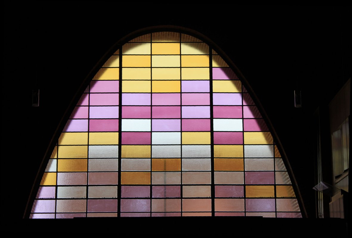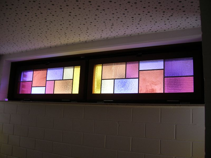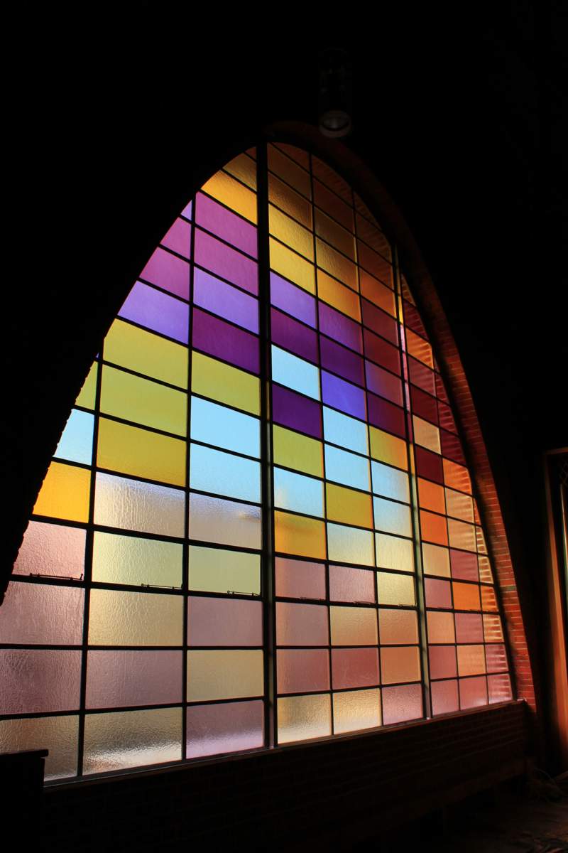 Bei ihrer Gestaltung legte die Gemeinde sehr viel Wert auf den Bezug zur Raumnutzung und den Kontex zu den anderen Kirchenfenstern. Die vorherrschenden Farben dieser Kathedralgläser sind daher ebenfalls gelb bis violett in verschiedenen Abstufungen.