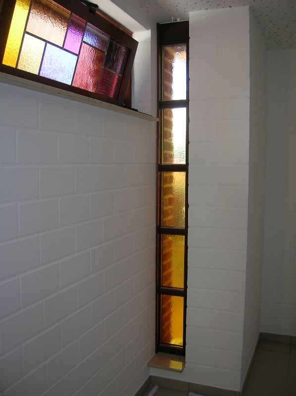 Die dabei neugeschaffenen Fenster des Beichtraumes an der Nord-Westseite der Kirche bestehen aus einem Doppelfenster mit Nord-West-Ausrichtung und zwei Lichtbändern, von denen eines nach Nord-Osten und das andere nach Süd-Westen weist.