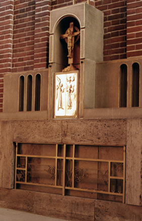 Im Tabernakel oder Hostienschrein ist Christus für uns Katholiken ständig gegenwärtig. Als Zeichen dafür brennt in jeder Kirche in seiner Nähe ein ewiges rotes Licht.