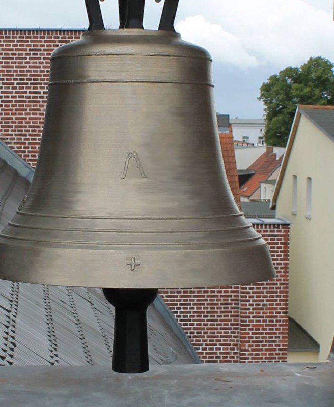 Das Firmenlogo von Rincker befindet sich auf der Rückseite der Glocke.
