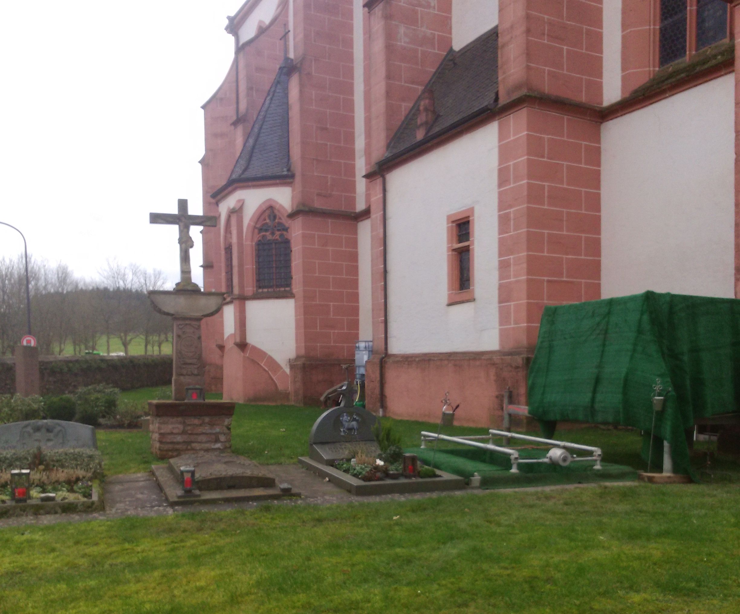 Die im Zuge des Kirchenbau`s 1928/29 benötigten Genehmigungen wurden vom damaligen Kreisbaumeister (1926 - 1937) Adalbert Schreiber erteilt. Selbst katholisch, war er darüber hinaus auch einer der größeren Spender des Kirchenbau`s gewesen.