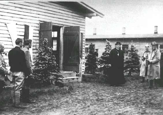 " Unstreitig sind aber seine Hilfen für ausländische Kriegsgefangene und Zwangsarbeiter, insbesondere für katholische Polen die nach 1939 in Neubrandenburg und Umgebung interniert oder in Betrieben und auf Höfen beschäftigt waren. Die Zustände im Kriegsgefangenenlager Fünfeichen, wo tausende polnischer und russischer Kriegsgefangener vegetierten und in großer Zahl auch verhungerten, stießen auf seine Empörung. Zwangsarbeitern gewährte er Zugang in sein Neubrandenburger Pfarrhaus, gab ihnen Lebensmittel und hörte mit ihnen ausländische Radiosender. " (aus: B.Schäfer`s Buch S.58)