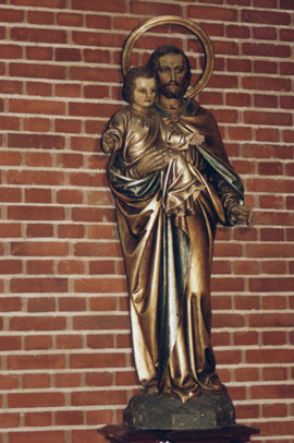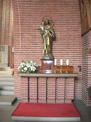 Auf dem vorderen linken Seitenaltar befindet sich die vor 1919 geschaffene holzgeschnitzte Mondsichelmadonna mit Sockel. Auf dem rechten Seitenaltar befindet sich ebenfalls eine vor 1919 geschaffene holzgeschnitzte Figur mit Sockel. Es ist der heilige Josef mit dem Jesuskind auf dem Arm.