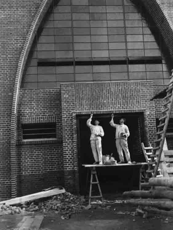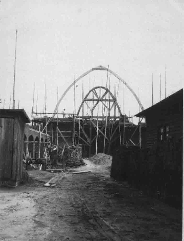 Nachdem die baupolizeiliche Genehmigung erteilt worden war, wurde bereits im Dezember 1928 mit den ersten Fundierungsarbeiten begonnen. Ein Grundpfeiler war bereits fertig, als der strenge Winter 1928 / 29 einsetzte, der es erst im April 1929 erlaubte, die Arbeiten fortzusetzen.